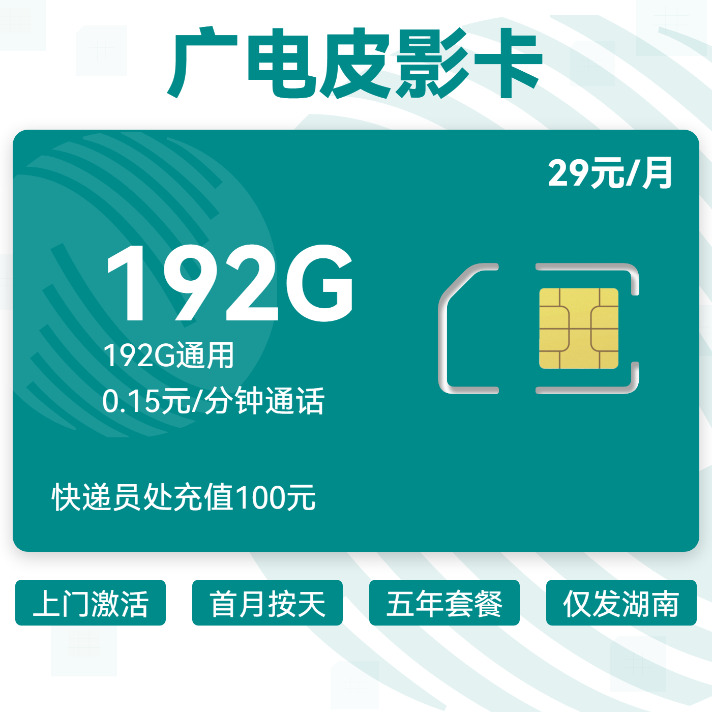 上门激活首月按天五年套餐仅发湖南