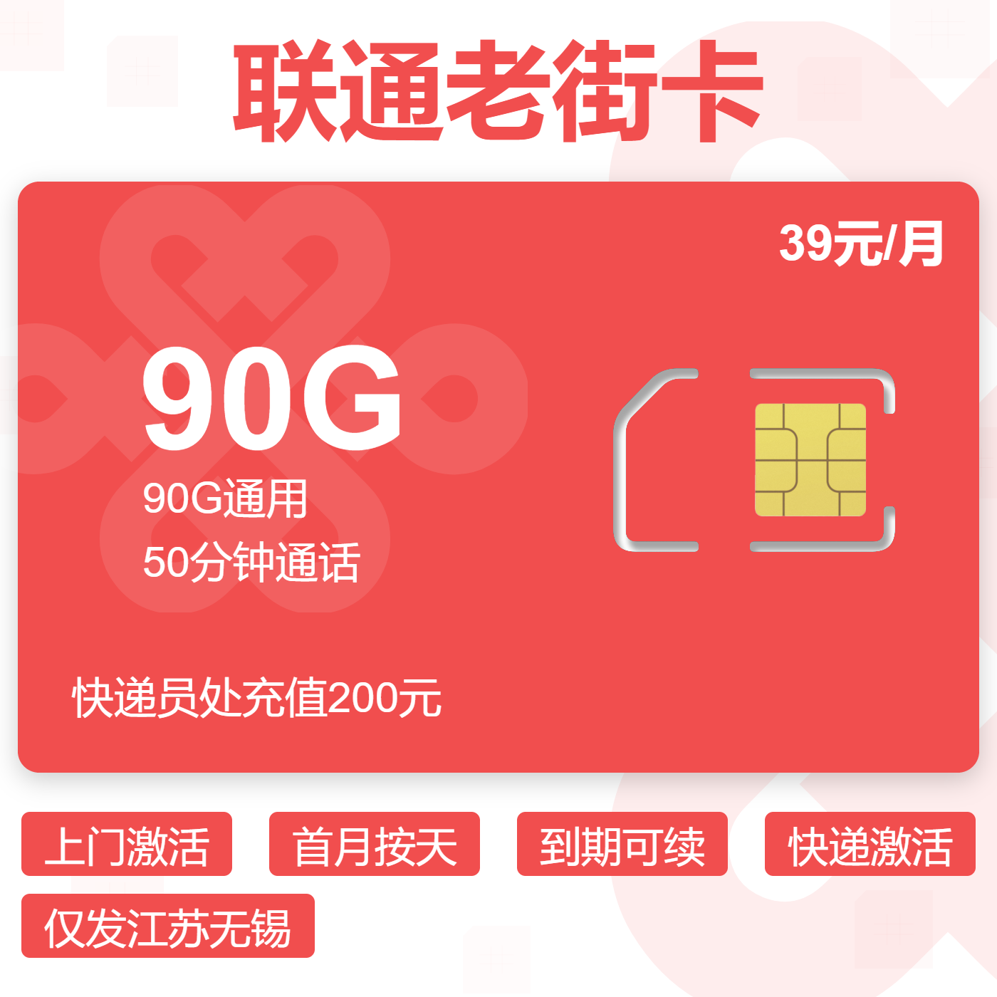 上门激活首月按天到期可续快递激活仅发江苏无锡