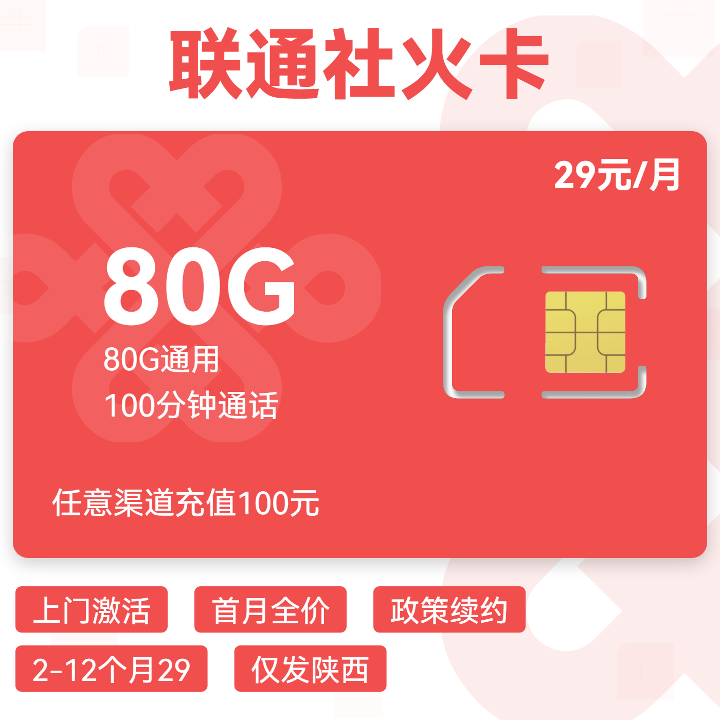 上门激活首月全价政策续约2-12个月29仅发陕西