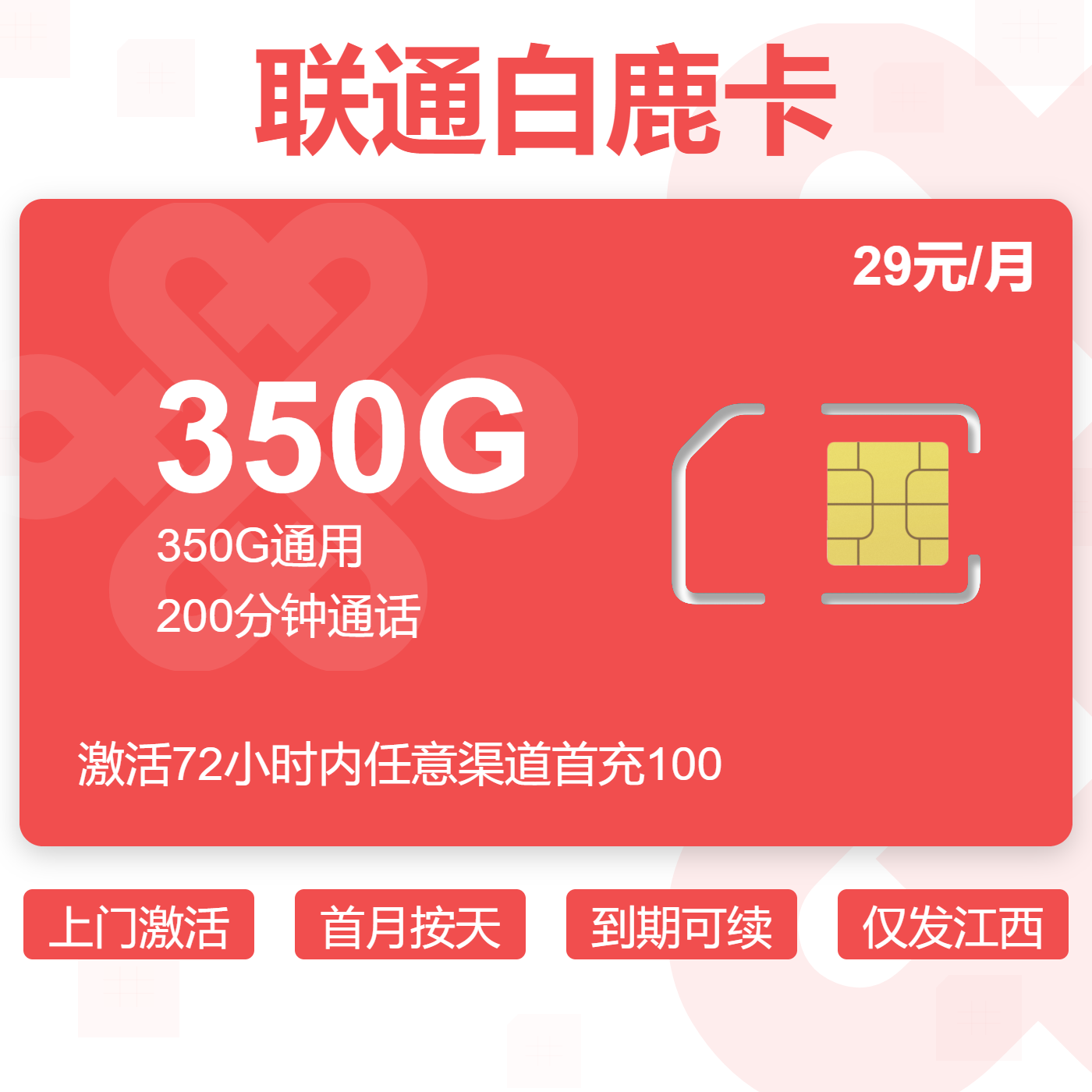 上门激活首月按天长期套餐激活强充多用多送仅发江西