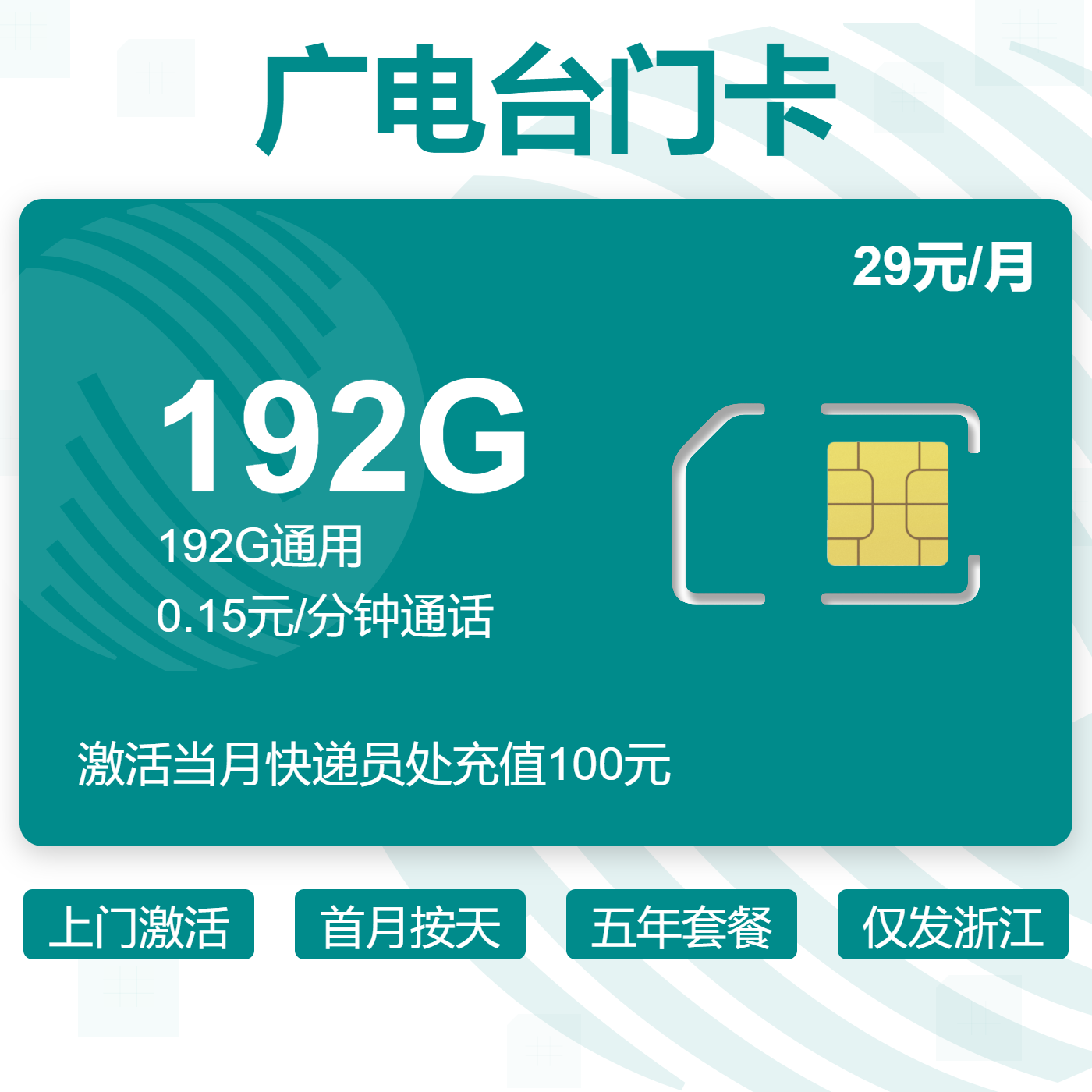 上门激活首月按天长期套餐仅发浙江