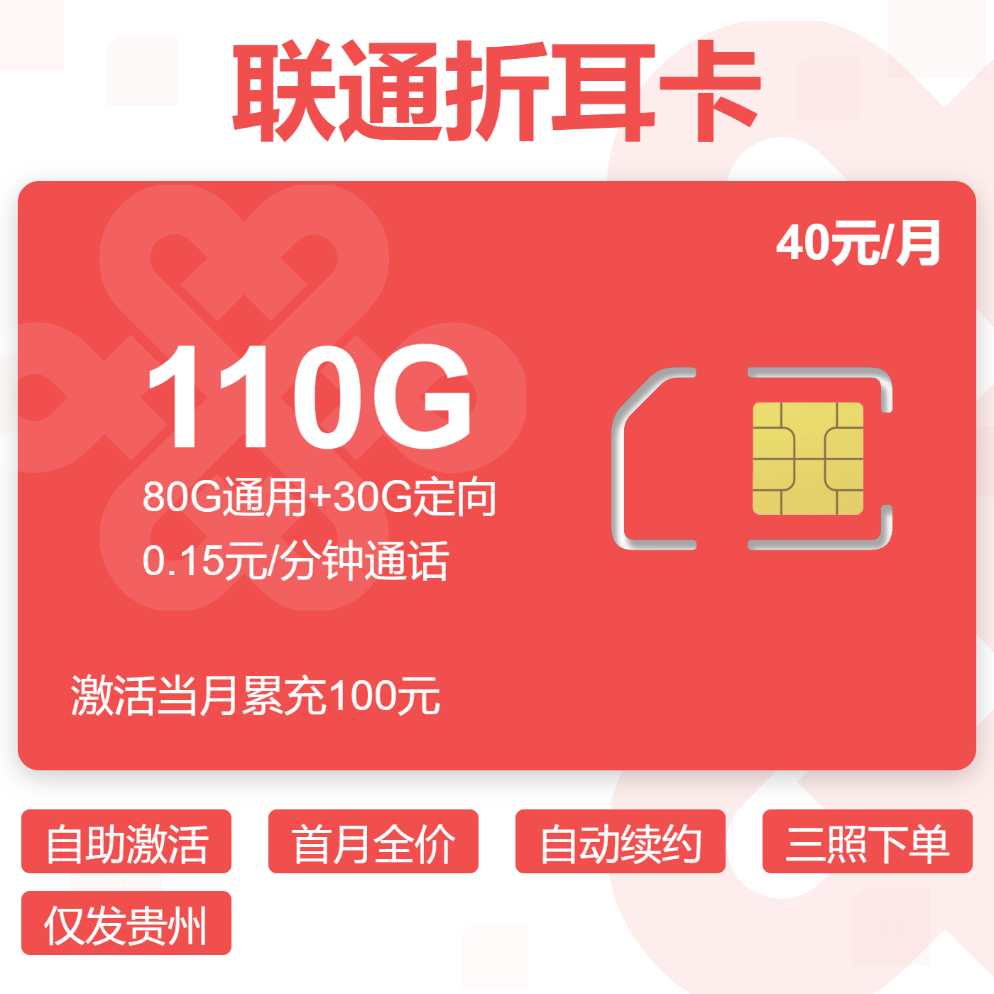 自助激活首月按天到期可续仅发贵州省内