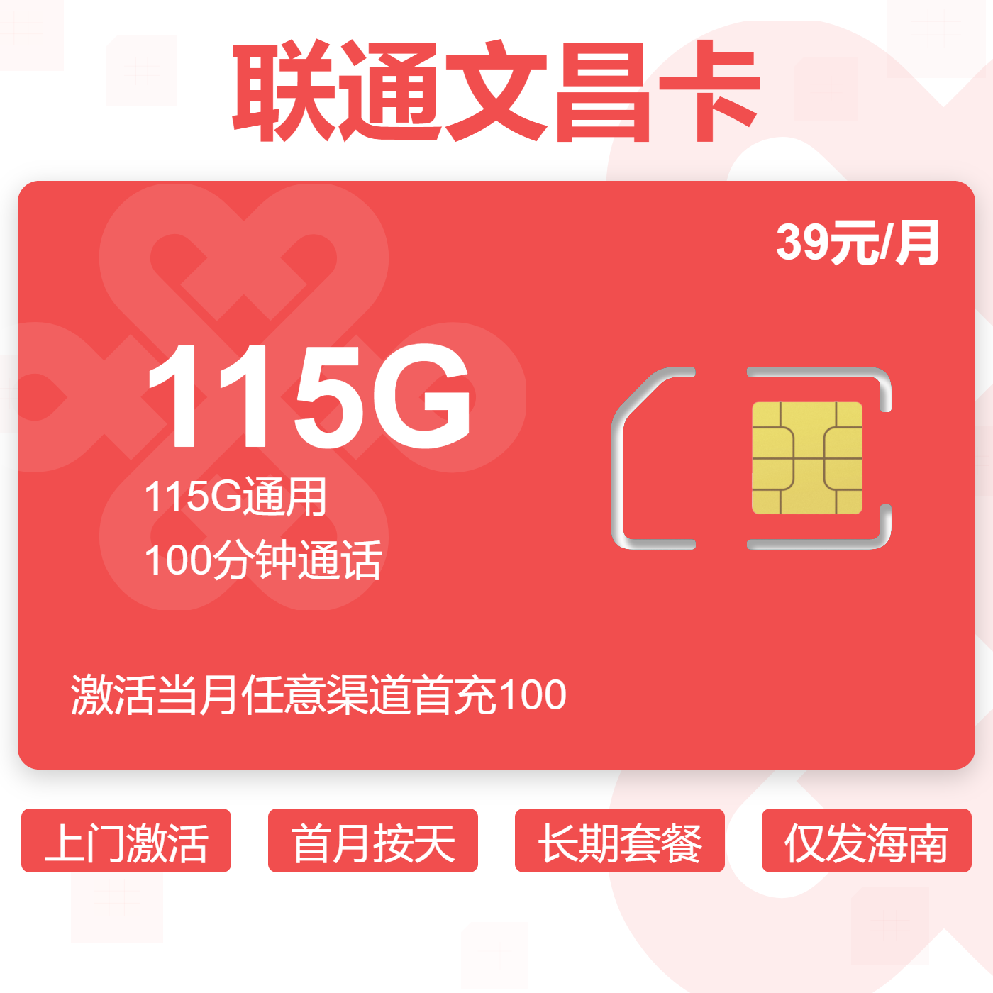 上门激活首月按天长期套餐仅发海南