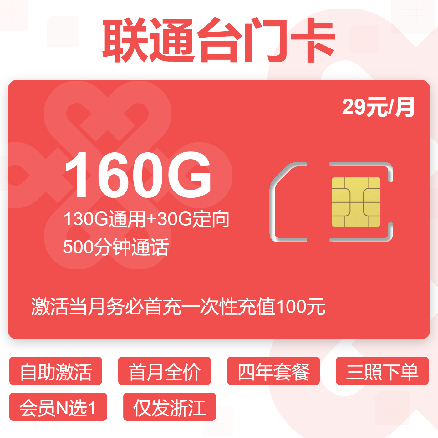 上门激活首月按天两年套餐两年优惠仅发浙江