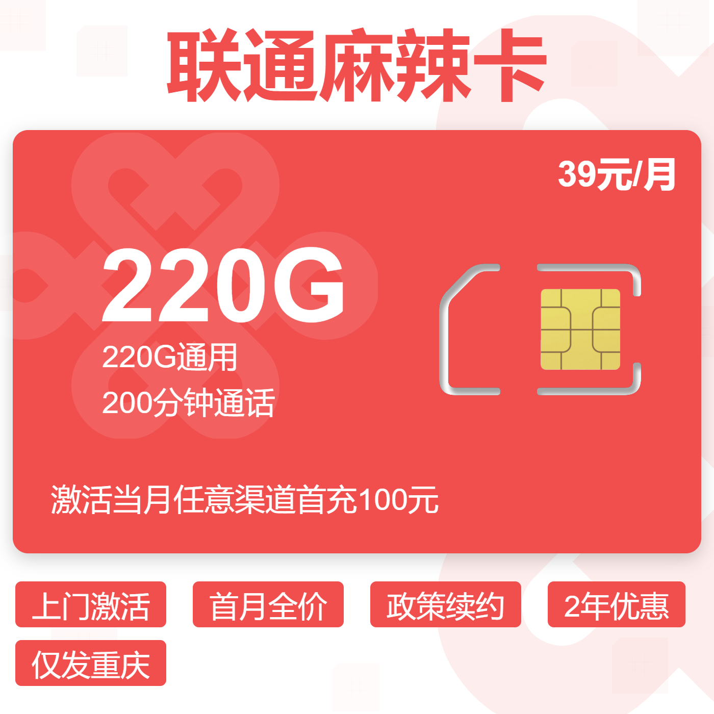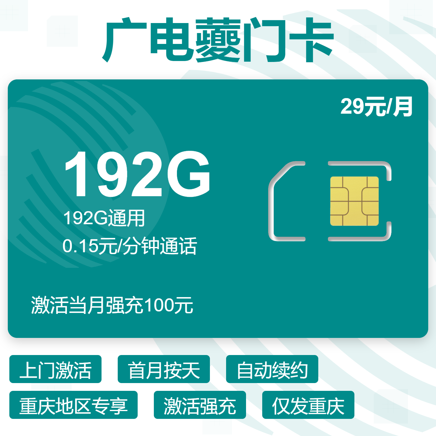 上门激活首月按天长期套餐仅发重庆