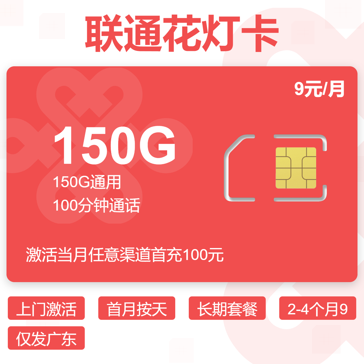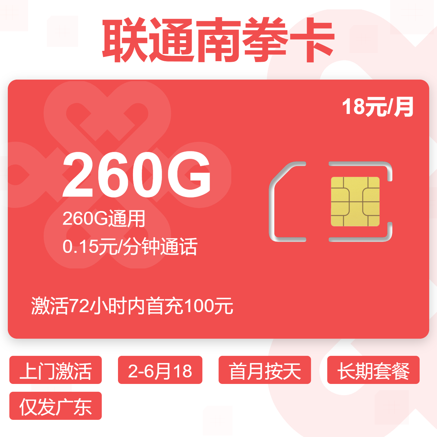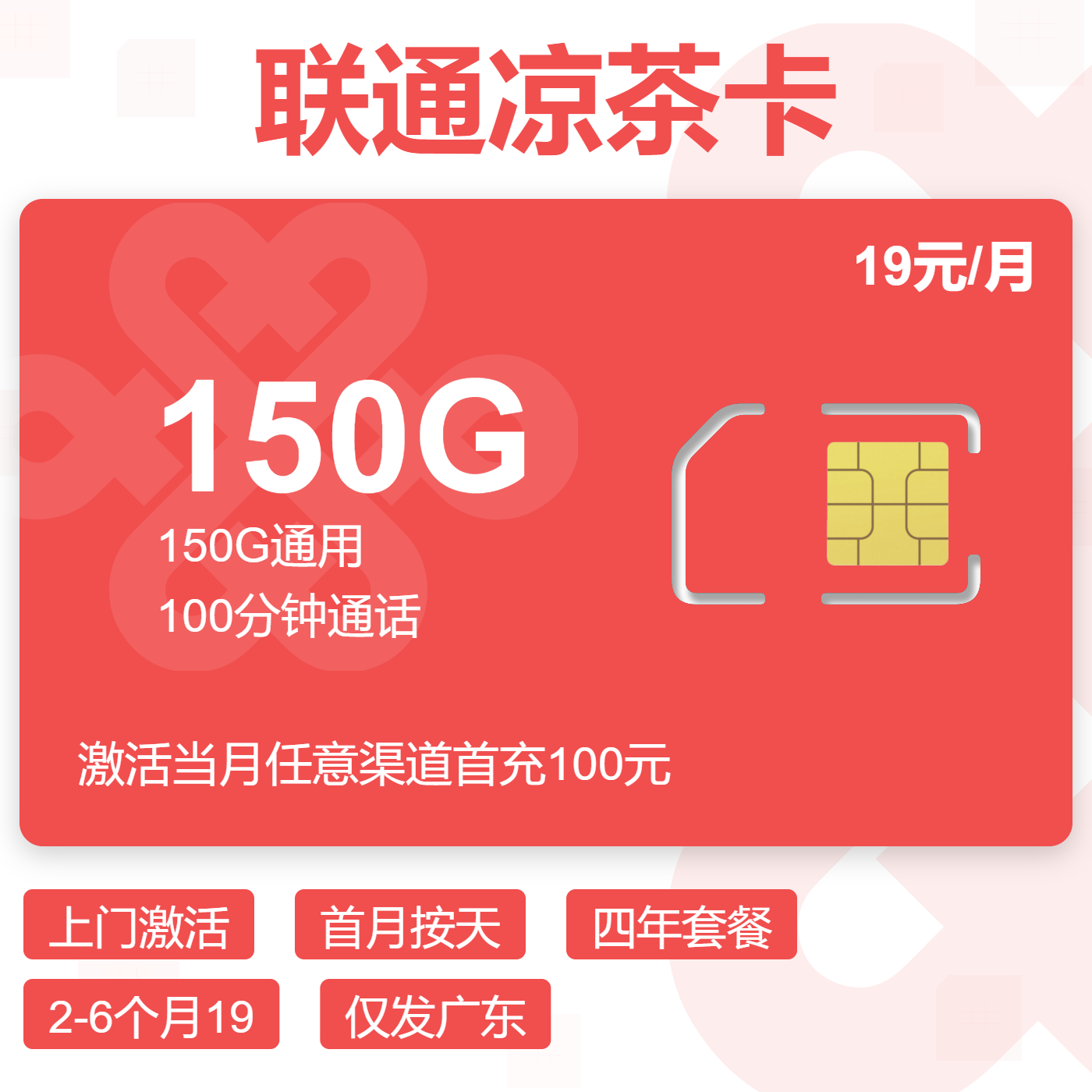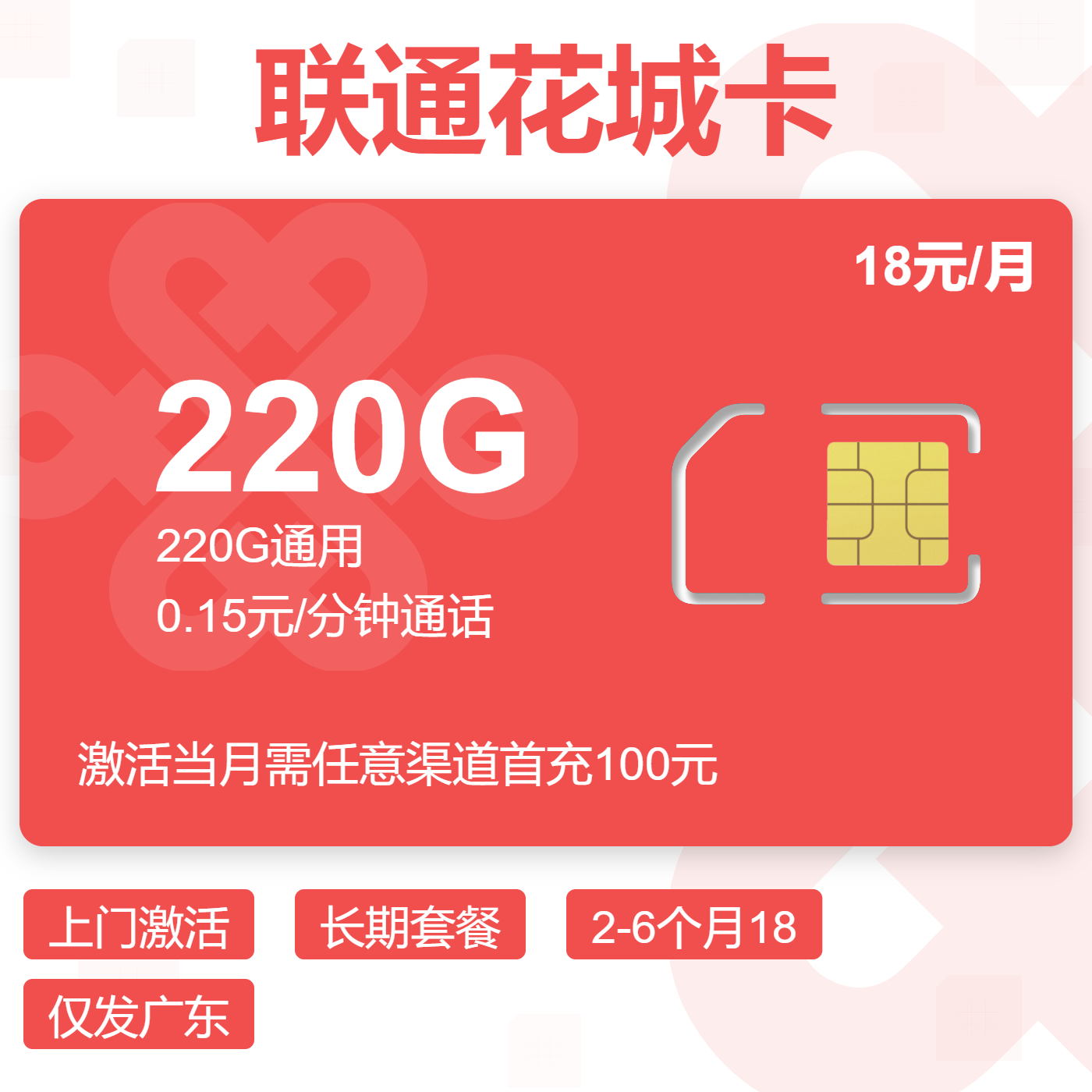 上门激活2-6月18首月按天长期套餐仅发广东