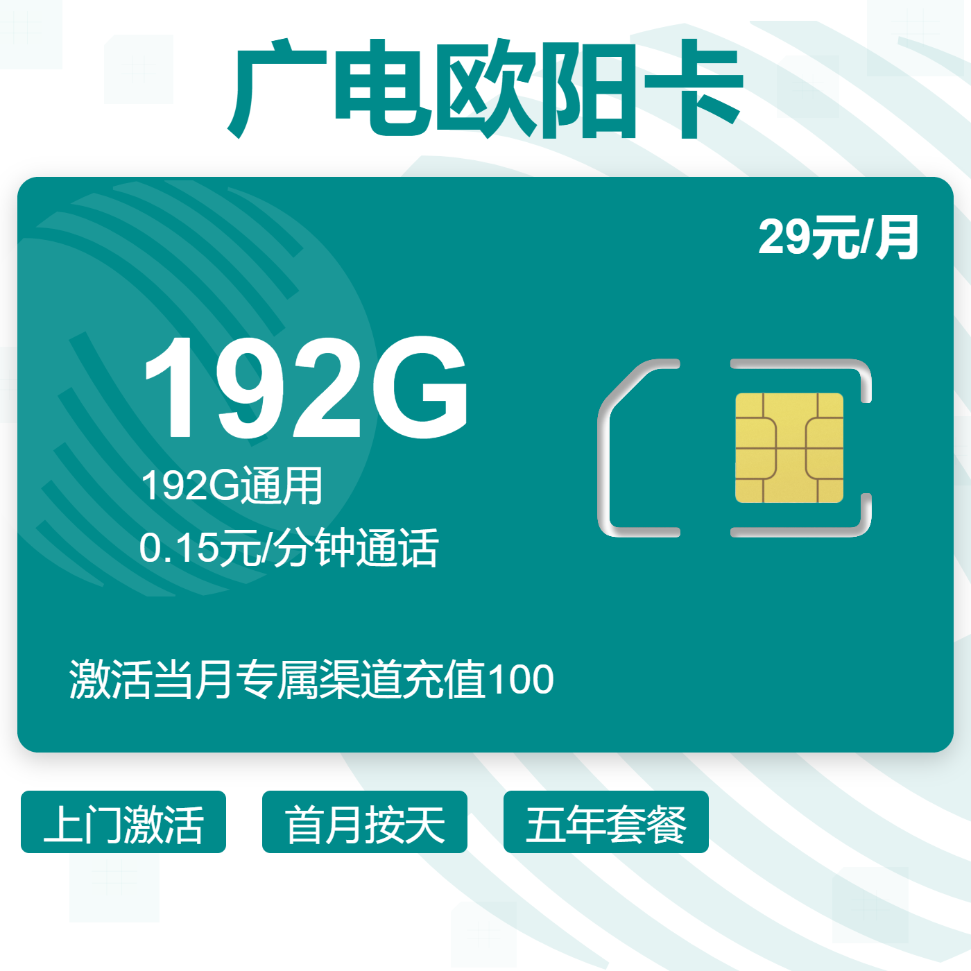 上门激活首月免费五年套餐可开副卡仅发广东