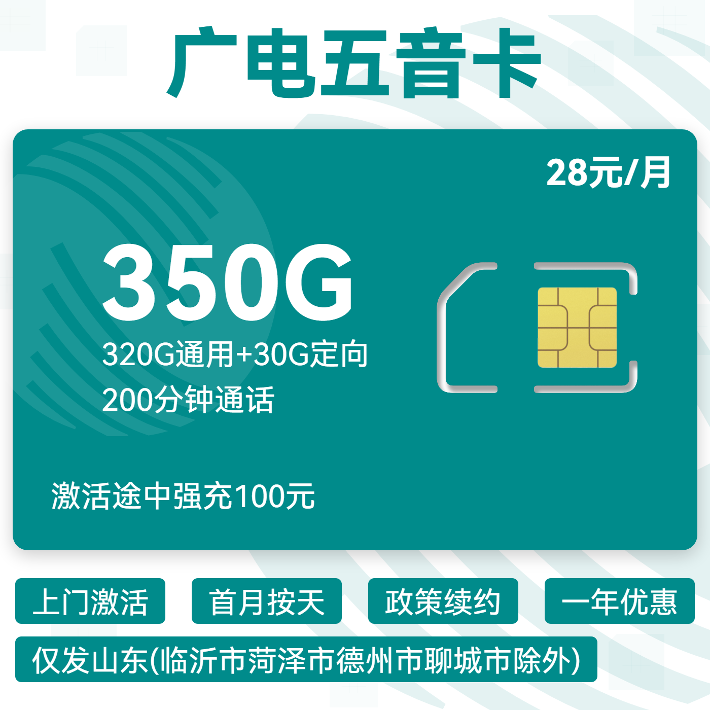 上门激活首月按天政策续约一年优惠仅发山东(临沂市菏泽市德州市聊城市除外)