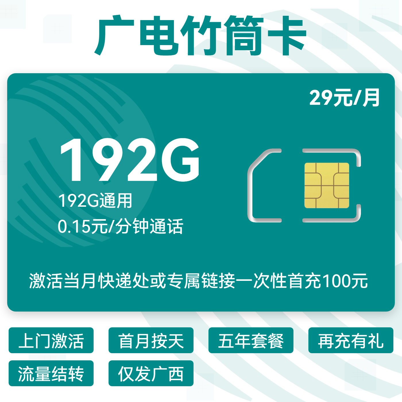 自助激活首月按天政策续约激活强充1001年29仅发广西省内