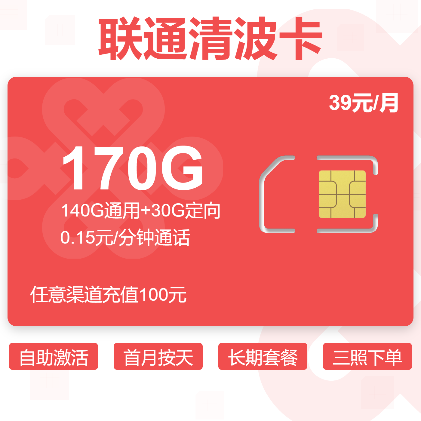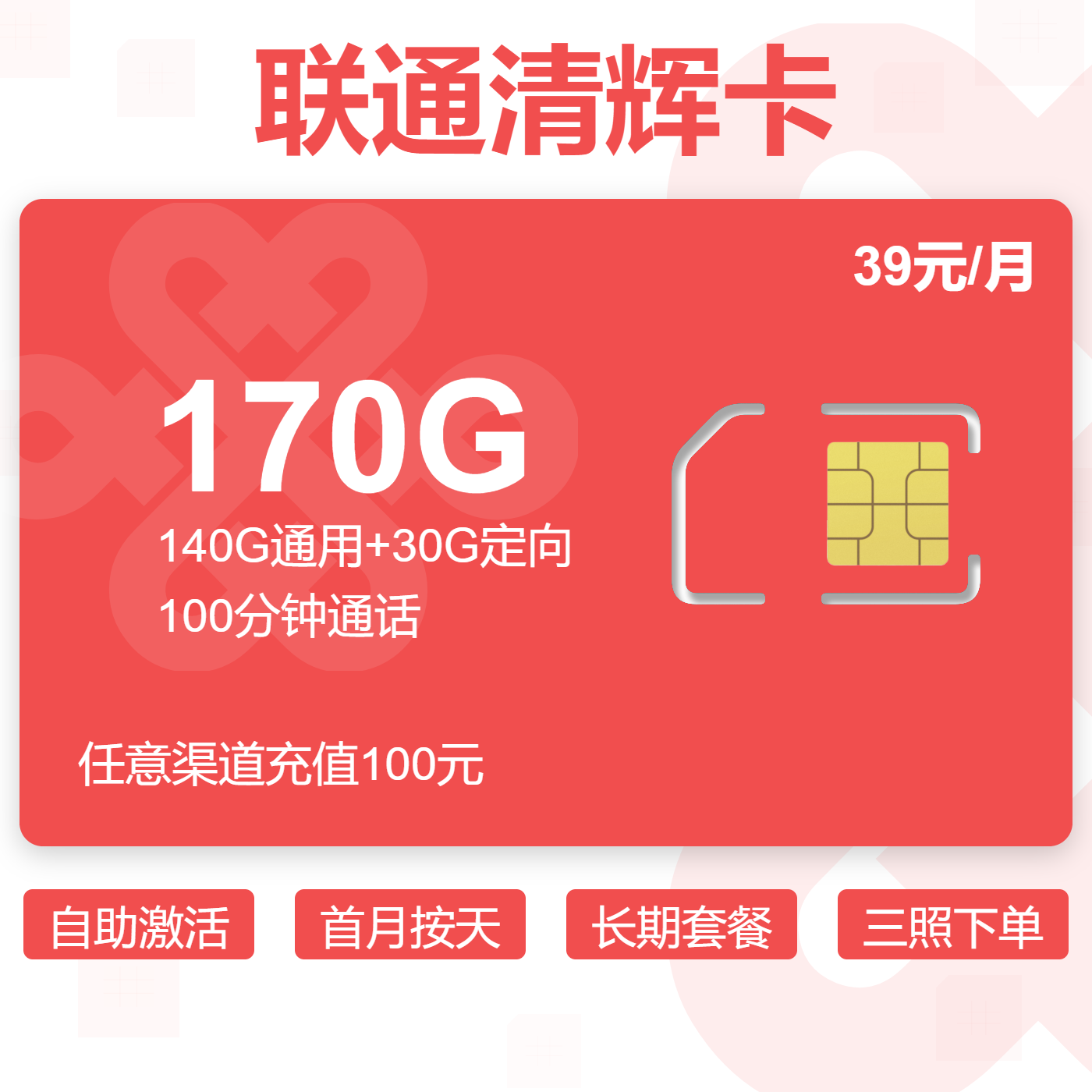 39元160G通用+100分钟+100条短信