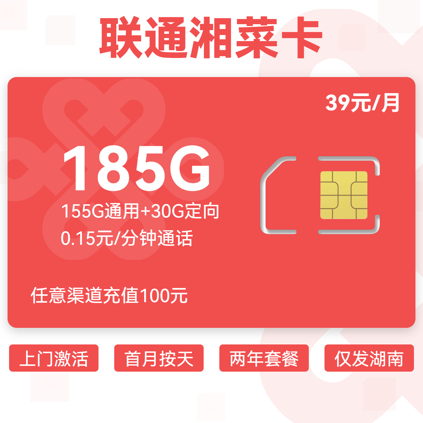 上门激活首月按天长期套餐仅发湖南