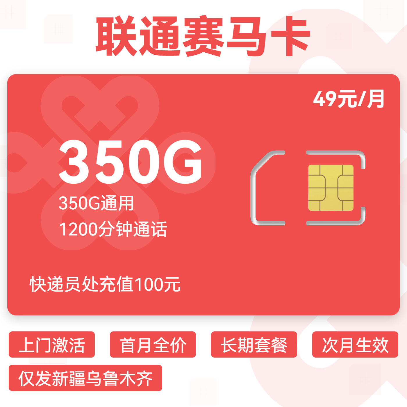 上门激活首月全价长期套餐次月生效仅发新疆乌鲁木齐