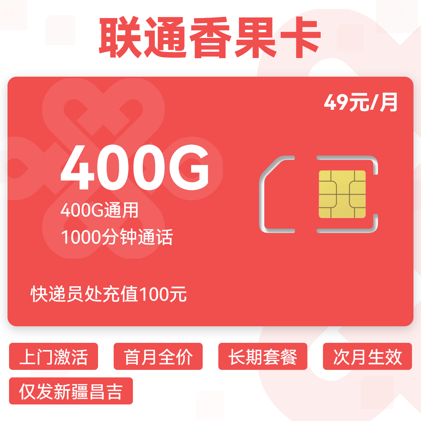 上门激活首月全价长期套餐次月生效仅发新疆昌吉
