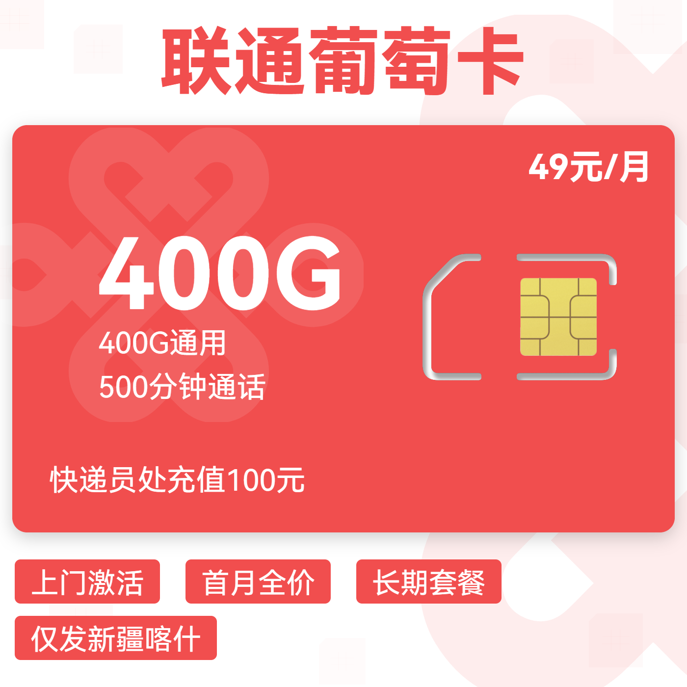 上门激活首月全价长期套餐仅发新疆喀什