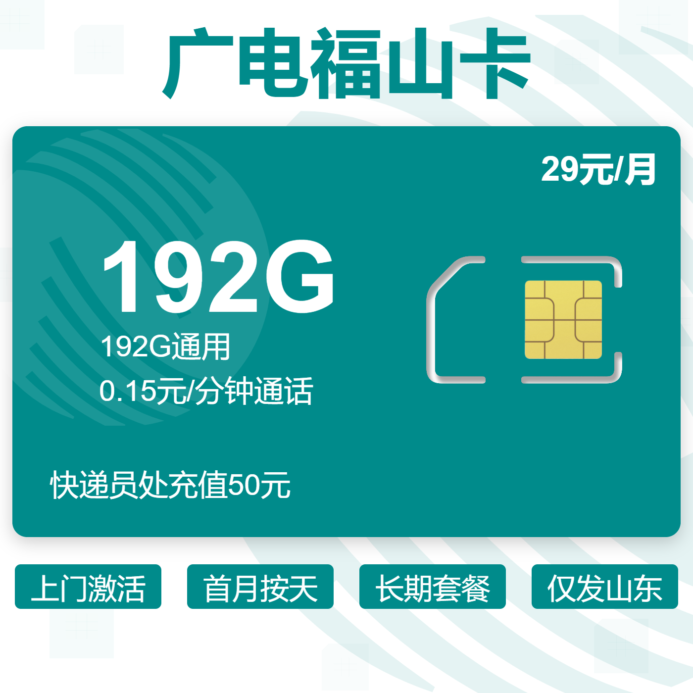 上门激活首月按天长期套餐仅发山东