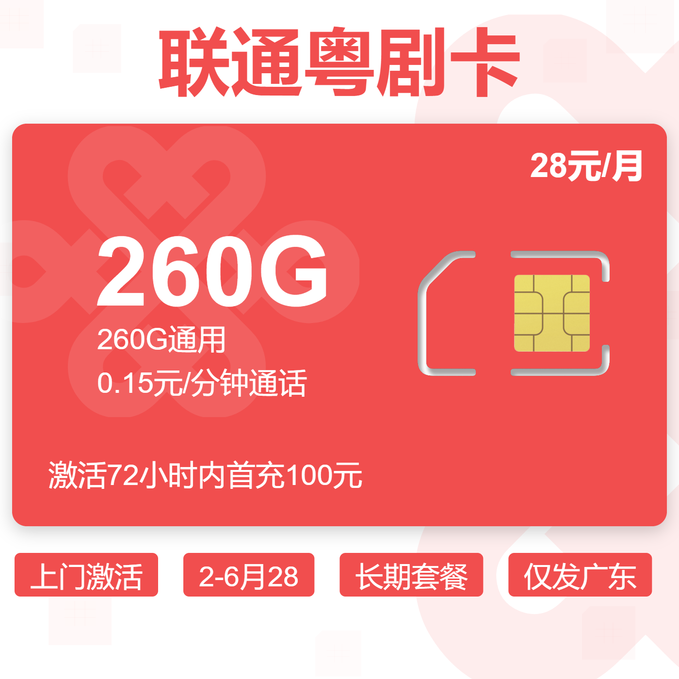 上门激活2-6月28长期套餐仅发广东