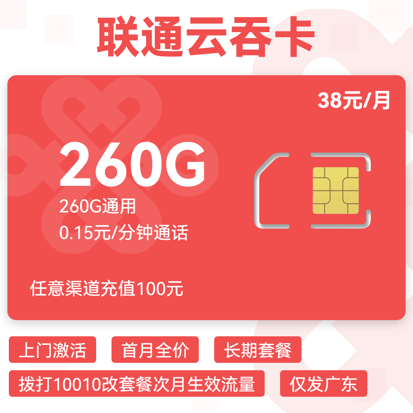 上门激活首月全价长期套餐拨打10010改套餐次月生效流量仅发广东