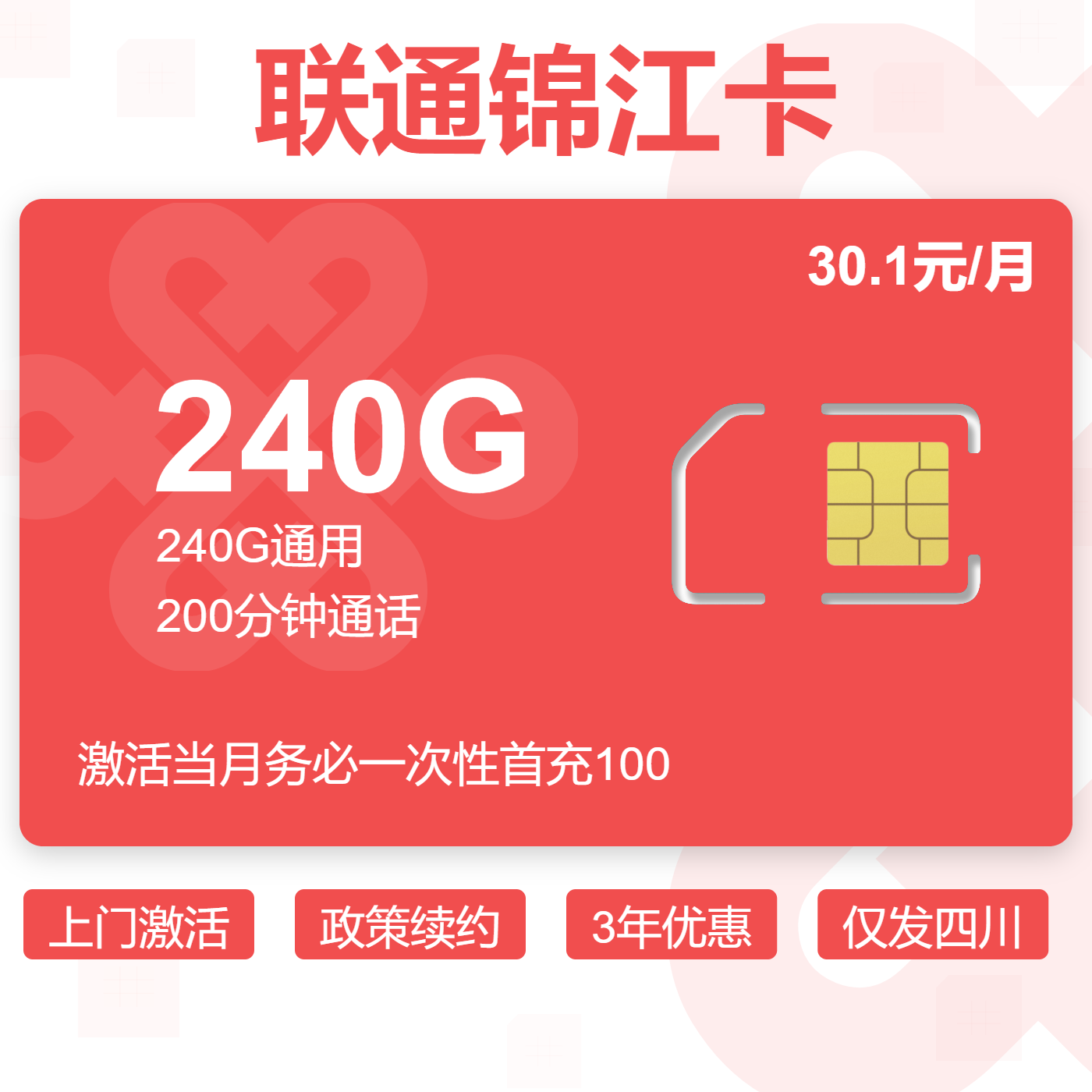 上门激活首月免费自动续约流量次月到仅发四川