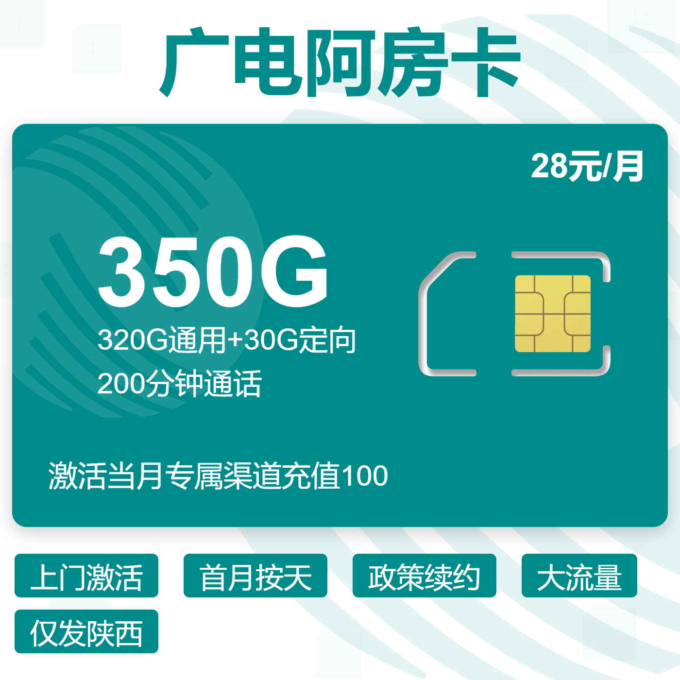 上门激活首月按天政策续约大流量仅发陕西